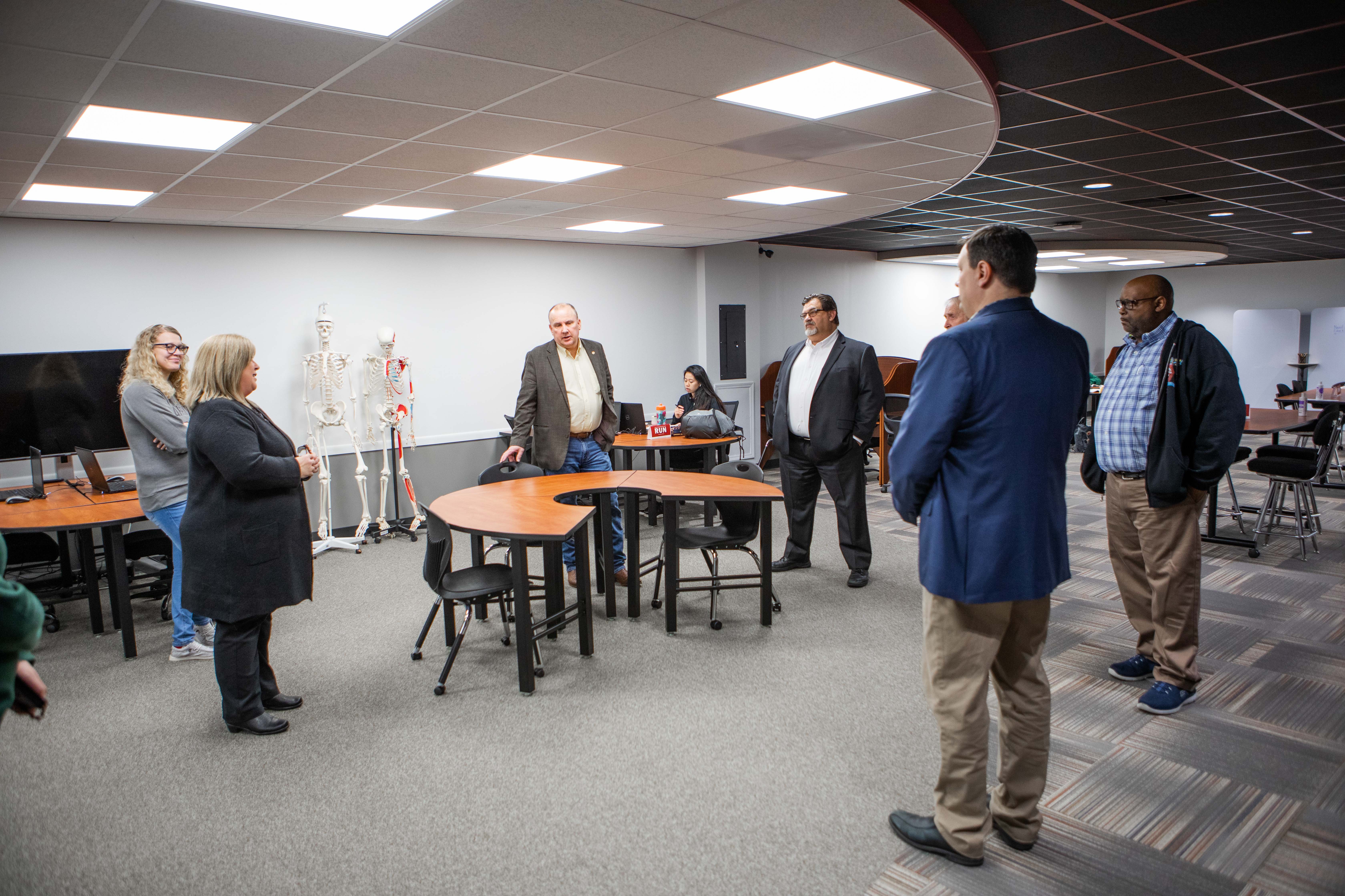 The group visited several key areas of the college campus, including the Learning Resource Center, Nursing Simulation Labs, the First Year Experience Room, the Hybrid Vehicle Classroom, and the Agronomy Innovation Center. At each stop, Dr. Durham and his colleagues were able to witness firsthand the cutting-edge facilities and technologies that Rend Lake College is using to prepare its students for successful careers in a variety of fields.